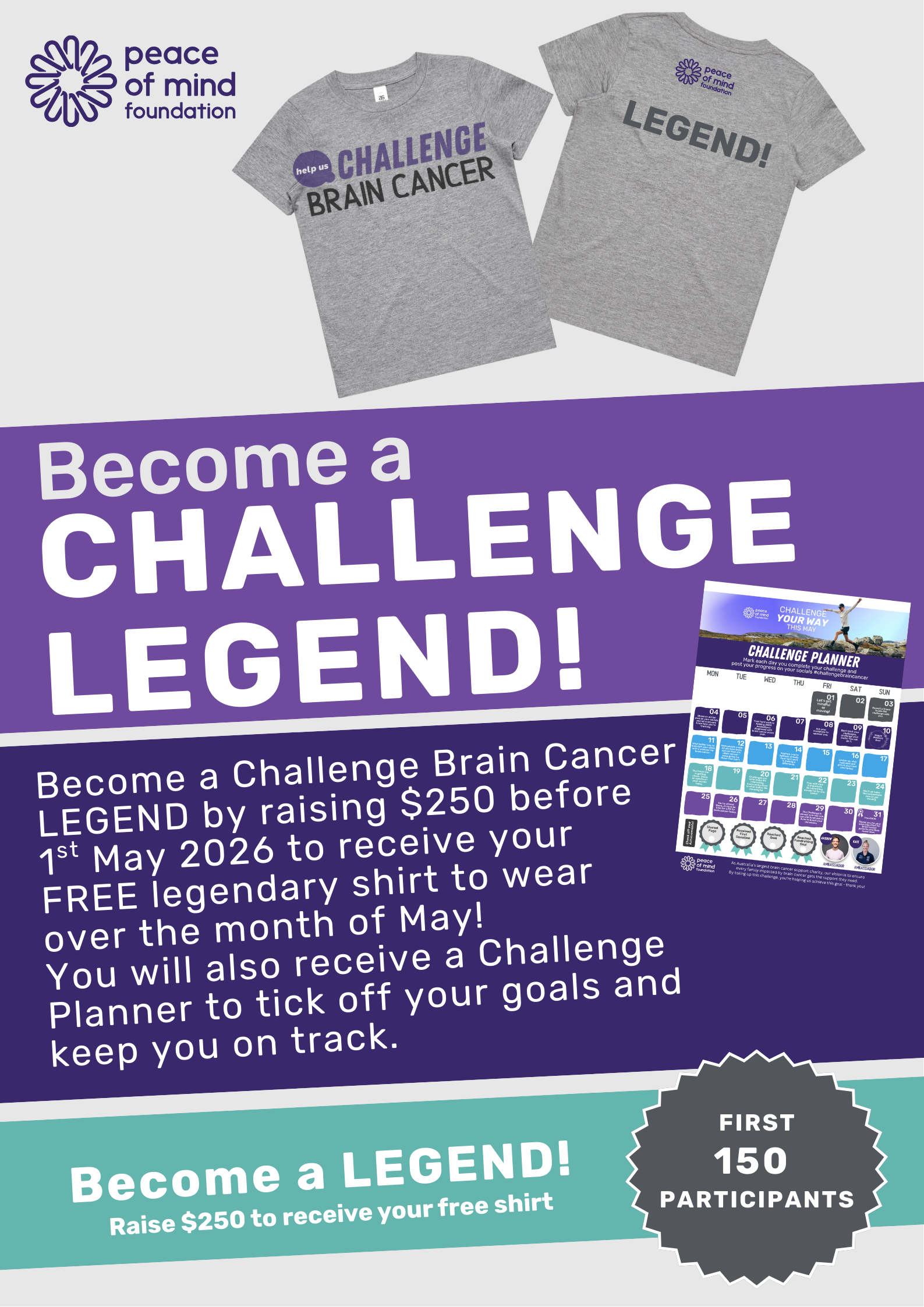 The first 150 participants to raise $250 by 1 May 2026 will earn an exclusive Challenge T‑Shirt!